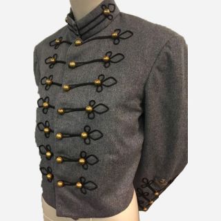 - Double-Breasted Button Design: It has two rows of large metallic buttons on the front, giving it a classic military look.